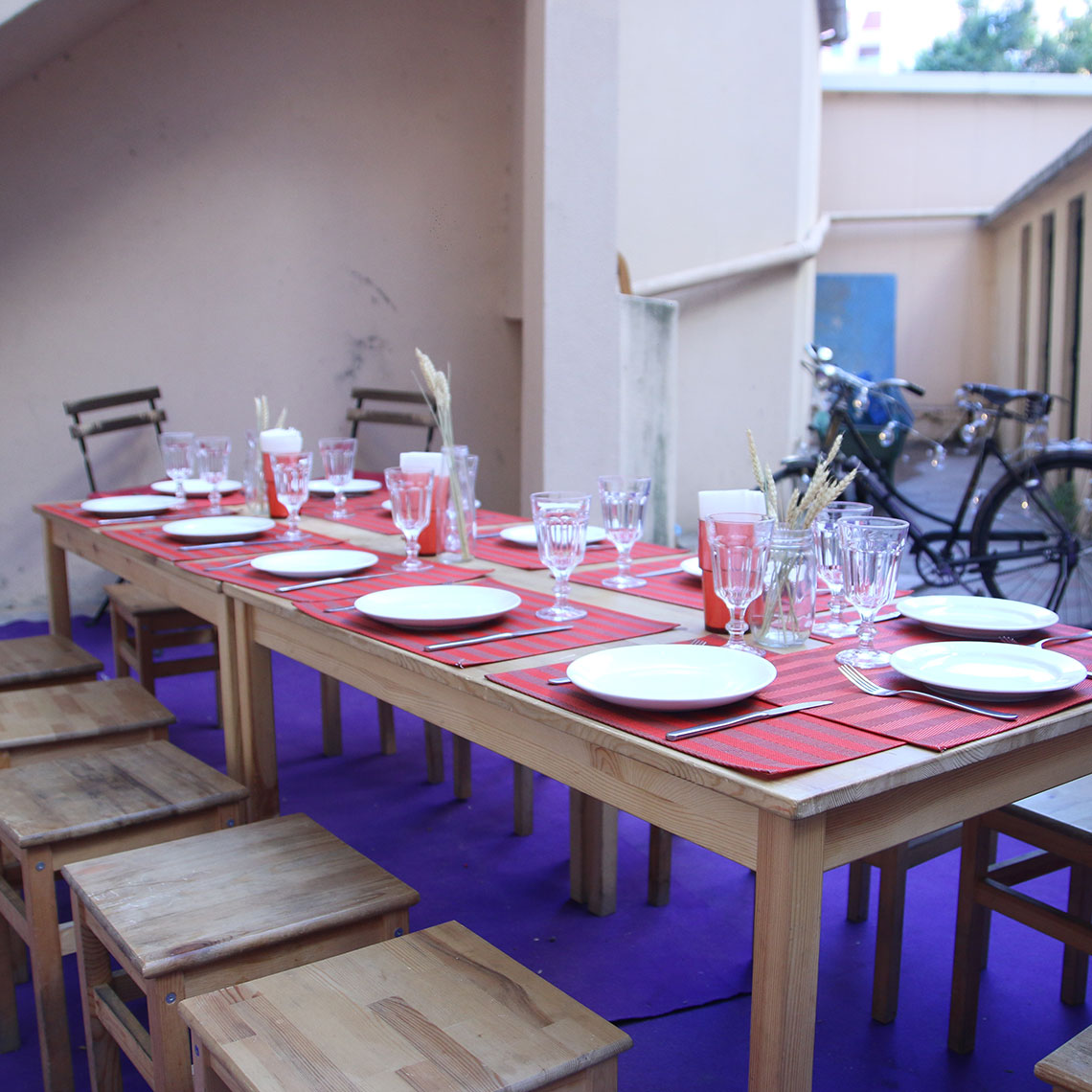De maio a outubro, desde que o bom tempo o convide, podemos concretizar as suas festas no pátio da Mercearia Criativa.